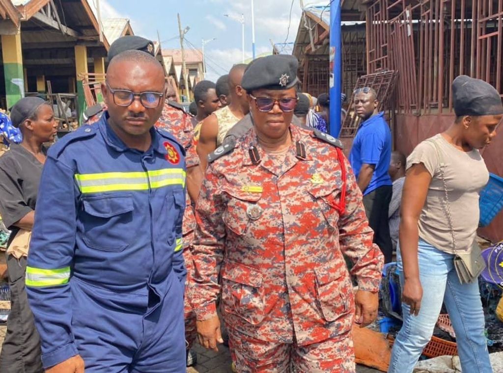 Central Regional fire commander inspects fire site at Kasoa market